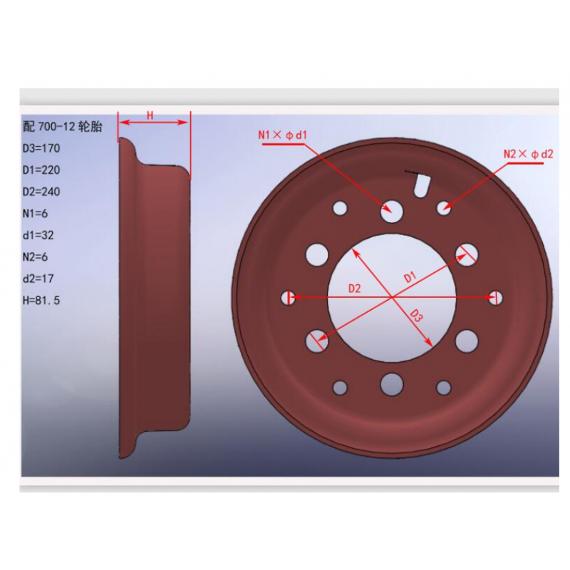 Диск колісний 5.00S-12, Шина 7.00-12, для навантажувача Komatsu FD, FG20-25T-12, 14, 16, 17, № 91843-15800, 91843-25800, 34B-279 00, 34B2700211