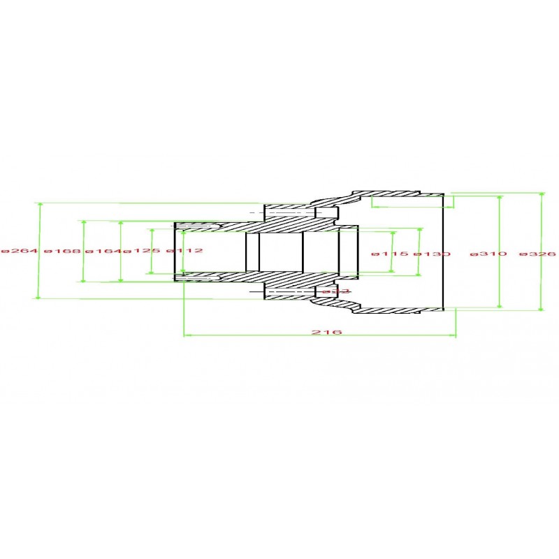 - Внутрішній діаметр (положення гальмівної накладки) D2 (мм) 310