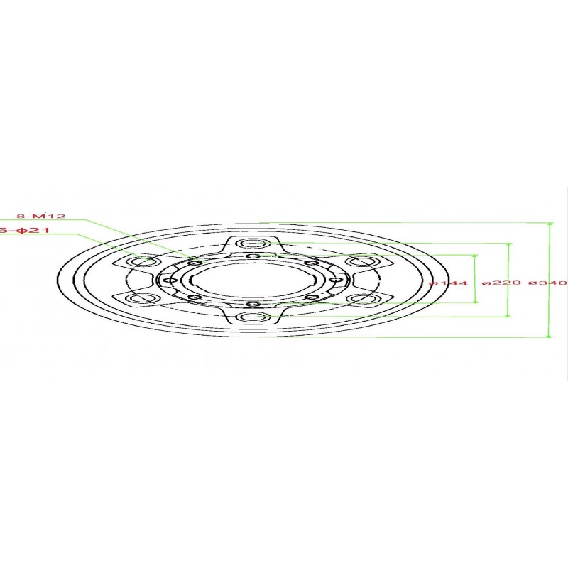 Опис Барабан гальмівний зі ступицею, для навантажувача Komatsu FD20-25T-17, FG20-25T-17 № 3EB-21-52320, 3EB2152320